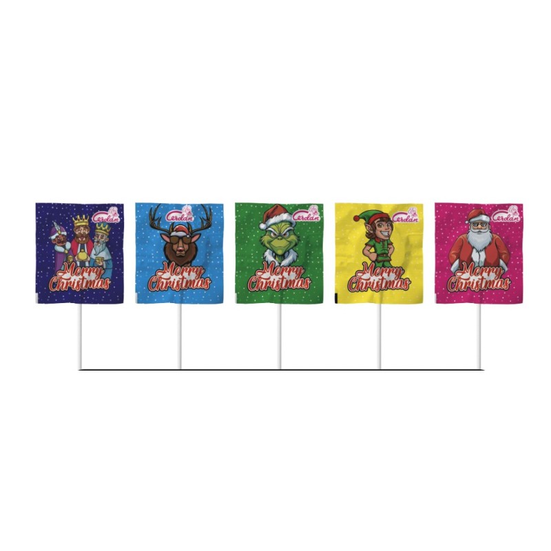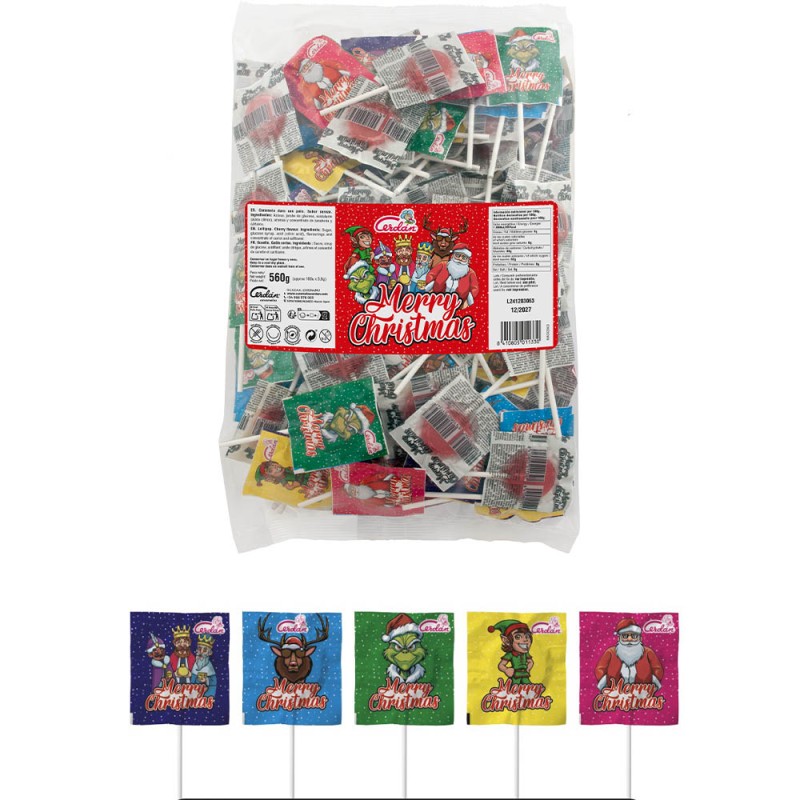 Deliciosas piruletas sabor cereza con motivos Navideños envasadas individualmente