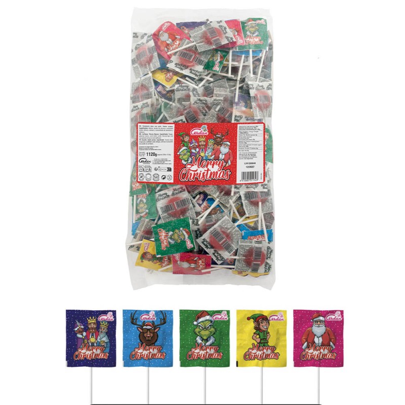 Deliciosas piruletas sabor cereza con motivos Navideños envasadas individualmente